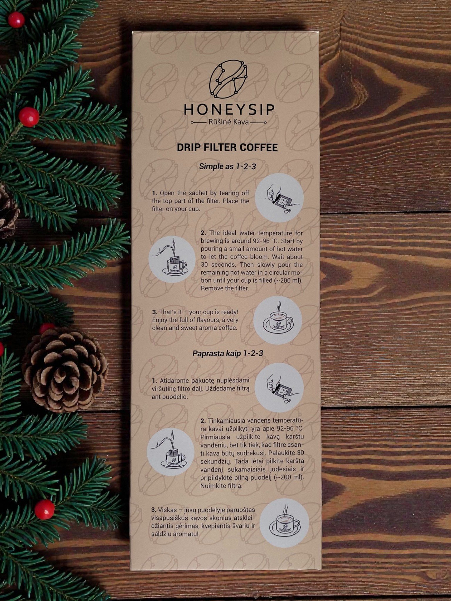 HONEYSIP Drip Coffee kalėdinė kavos dovana (26 filtrai)
